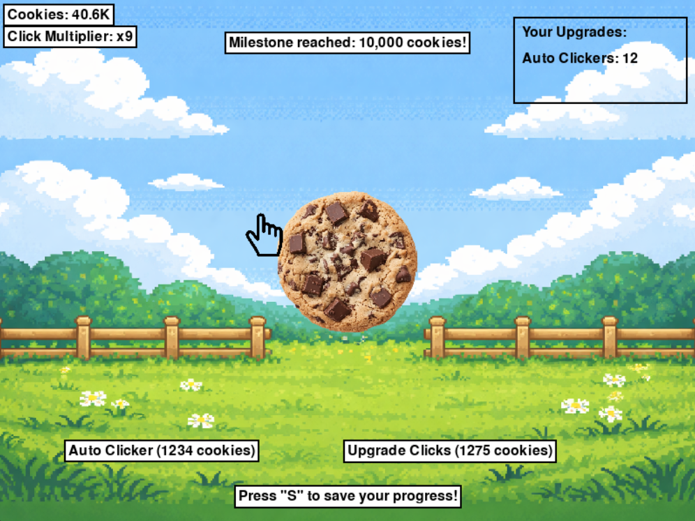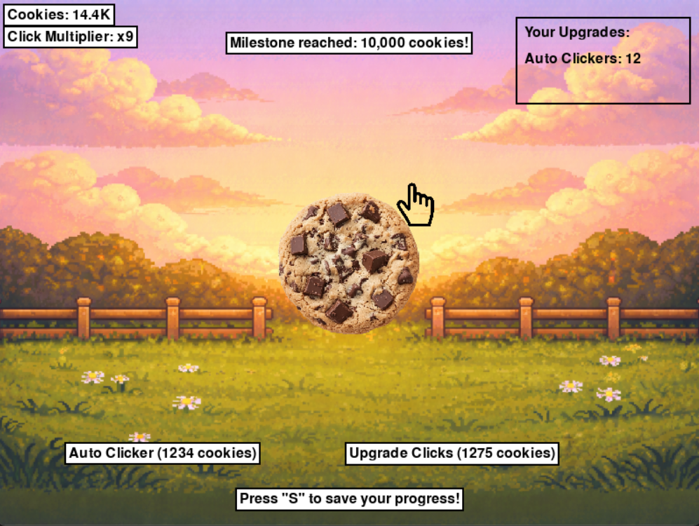 - Progress: Watch your cookie count rise as you click faster.